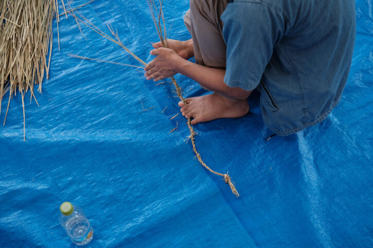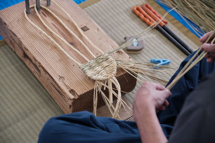 ある時、障がいを持って暮らす入居者の一人、よしあきさんの卓越した技術に気づきました。彼の得意技は、藁の縄を使ってわらじ(伝統的な草履)を編むことです。その手仕事だけでなく、足や道具の使い方まで非常に熟練していました。私も同じ工程を真似してみましたが、彼の技には到底及びませんでした。