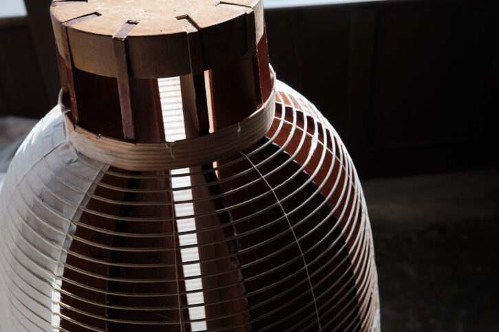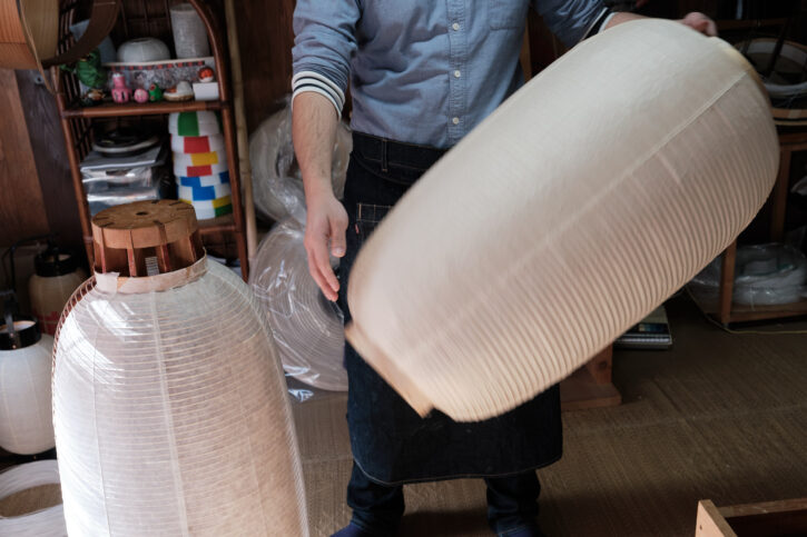 福岡・八女の伝統的な建物を改修するプロジェクトで、新しい提灯型の照明をつくる機会を得ました。伊藤権次郎商店の八代目当主、伊藤弘樹さんと一緒に取り組むことになっていました。初めて工房を訪れた際、デザイン案を携えた上で臨みましたが、結局デザイン案を伊藤さんに見せることはありませんでした。対話を重ねる中で、私たちが率先して新しい造形を描く必要がないと感じたからです。