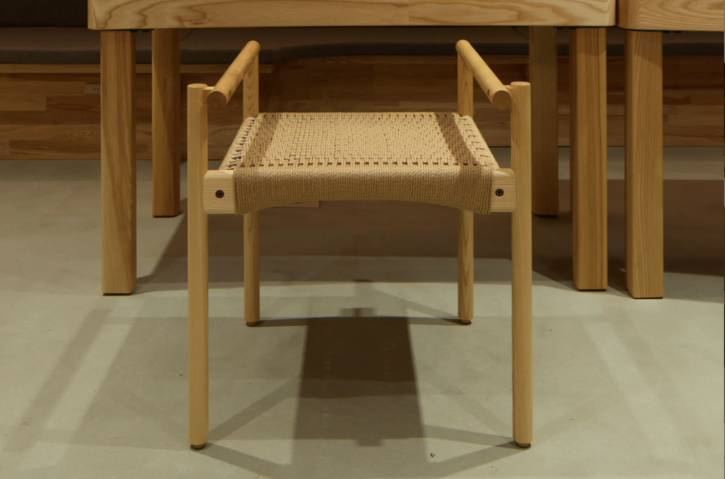 This lightweight armchair, made of ash wood and paper cord, was designed for a care facility in Kumamoto. Inspired by the exceptional rope-braiding skills of one of the residents with disabilities, it is designed to be assembled by the residents themselves, bringing their craftsmanship into the space.