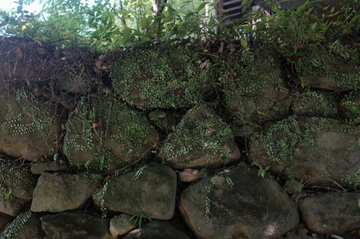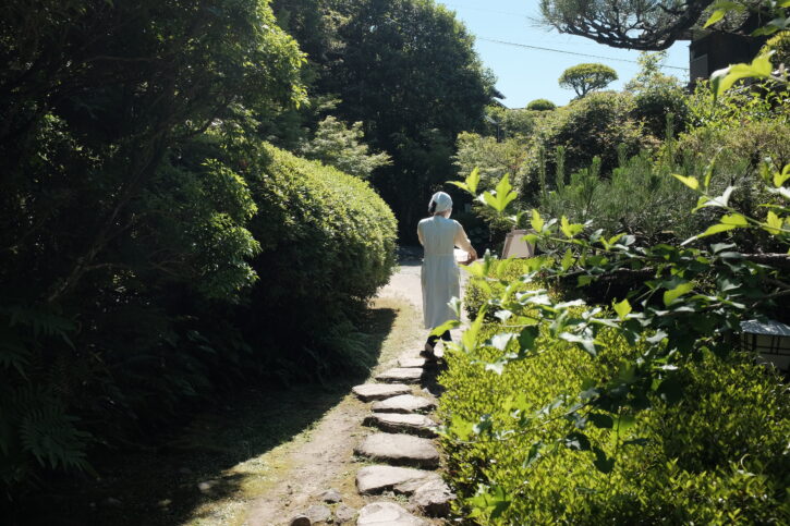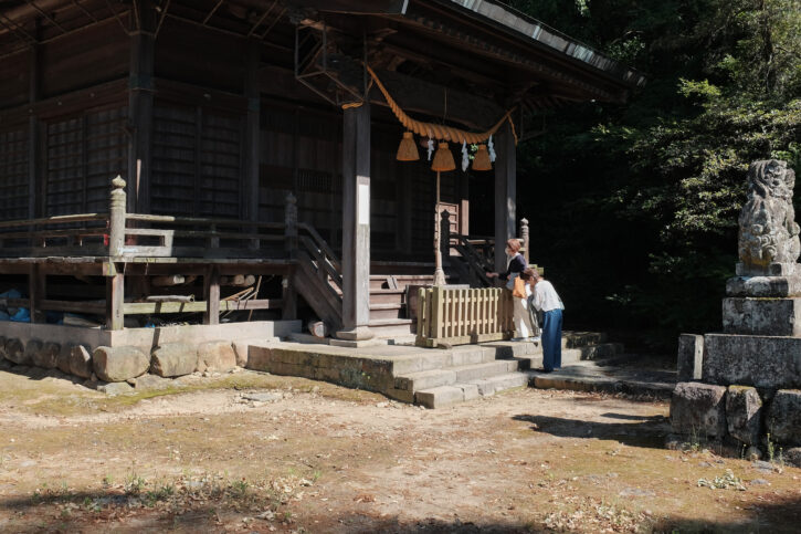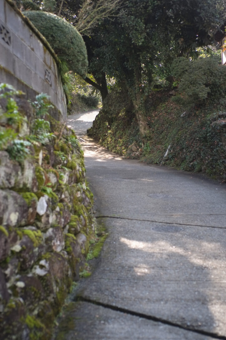 彼らの日常は早朝の掃除から始まる。豊かな自然や石垣の景観に囲まれた場所は、いつ訪れても「変わらない風景」としてそこにある。それは、何もせずに手に入れられるものではなく、日々の手入れを続けてこそ、生まれる風景だ。自分たちで手入れを重ね、続けてきた場所には、暮らしと仕事が分かちがたく混ざり合った風景がある。丘の上の神社へと続く坂道。その景色こそが、「ぶどうのたね」の背骨であると感じている。